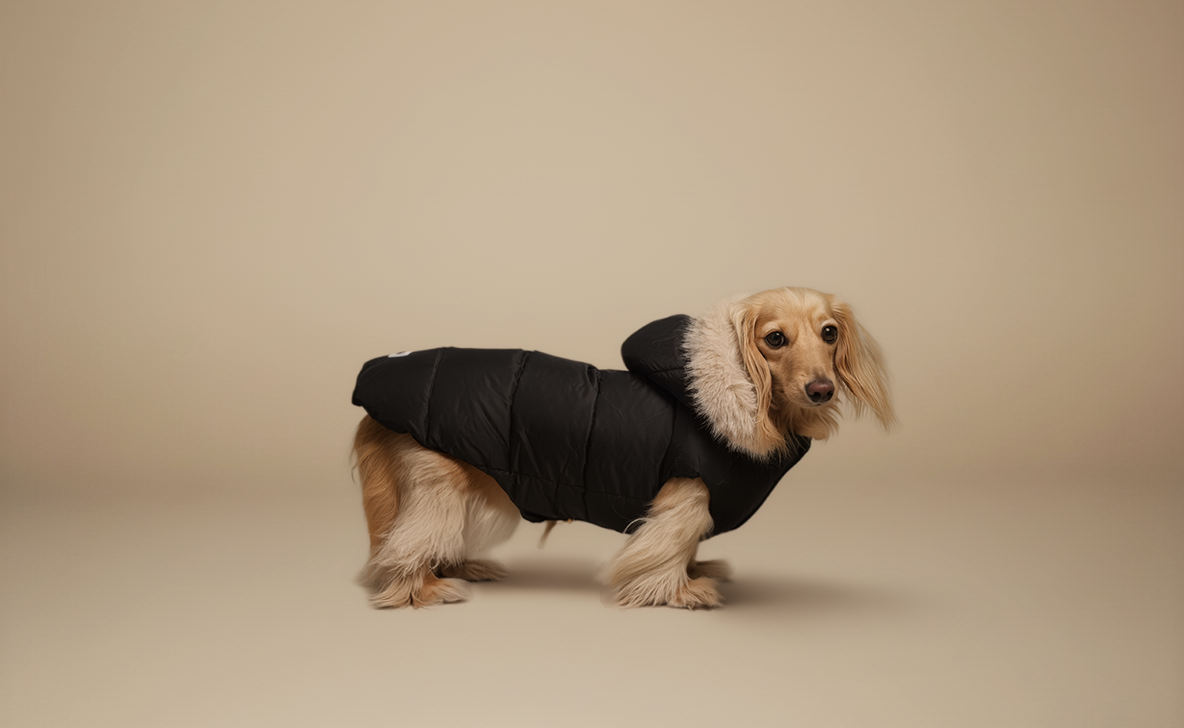 All future outerwear pieces will feature a built-in harness opening or easy access for lead attachment. Currently, the Limo Coat, Longbody Raincoat, and Down Puffer are all harness-compatible.