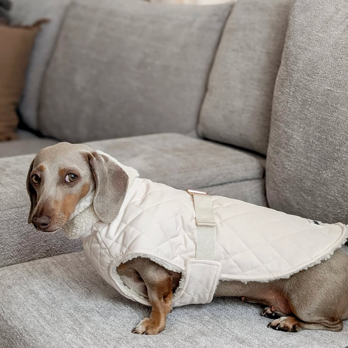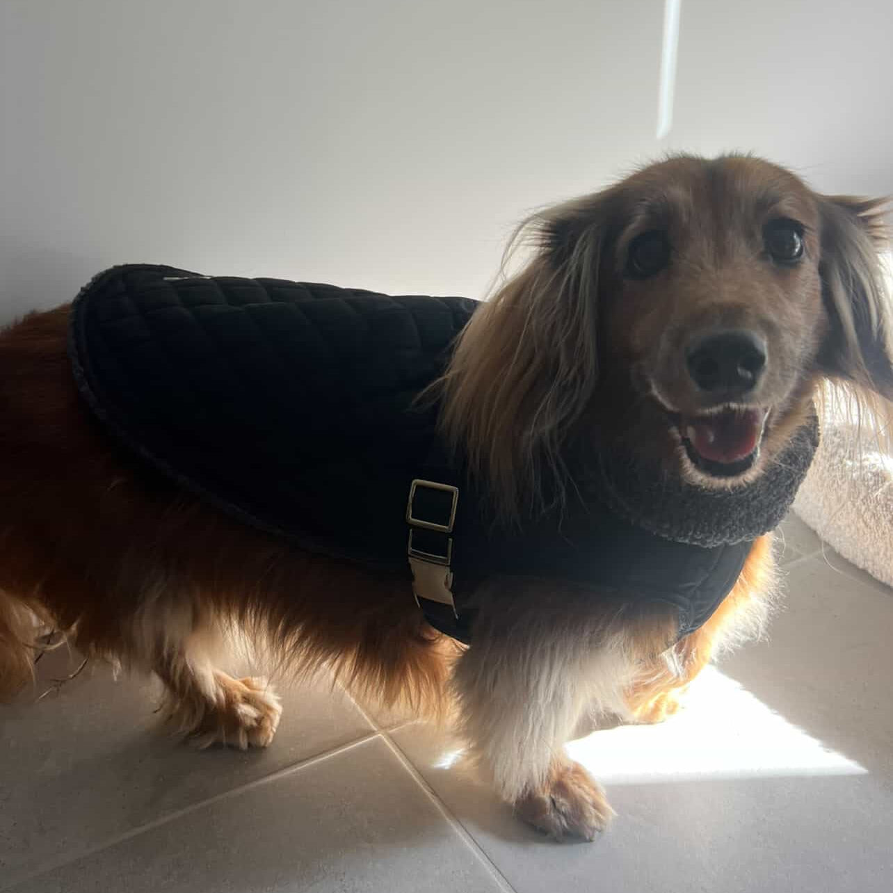 Walk-ready in seconds. No fumbling with the coat, just clip your lead through and go.