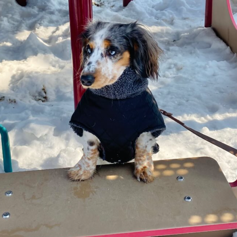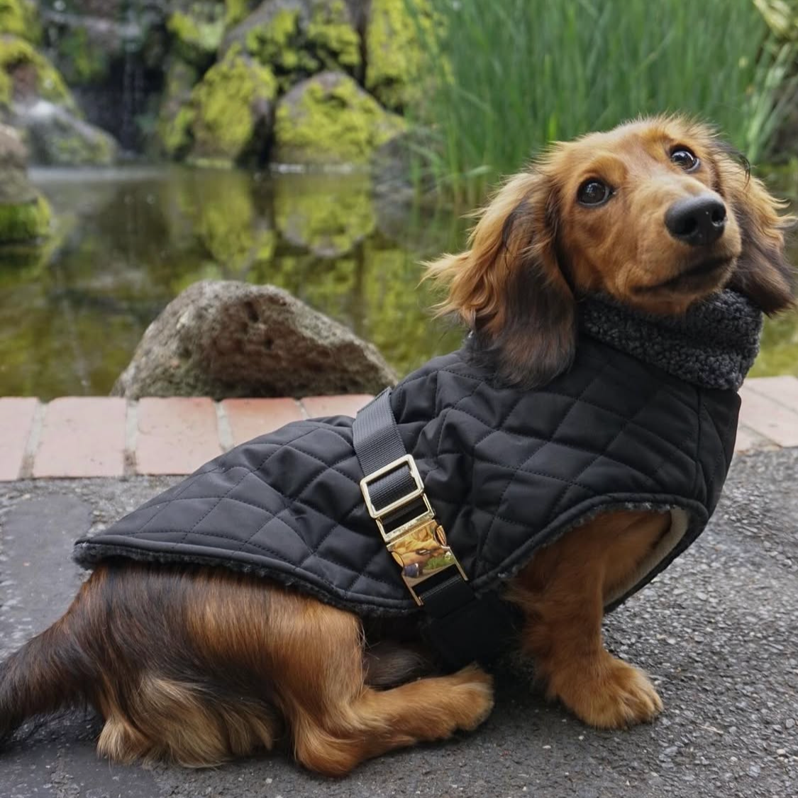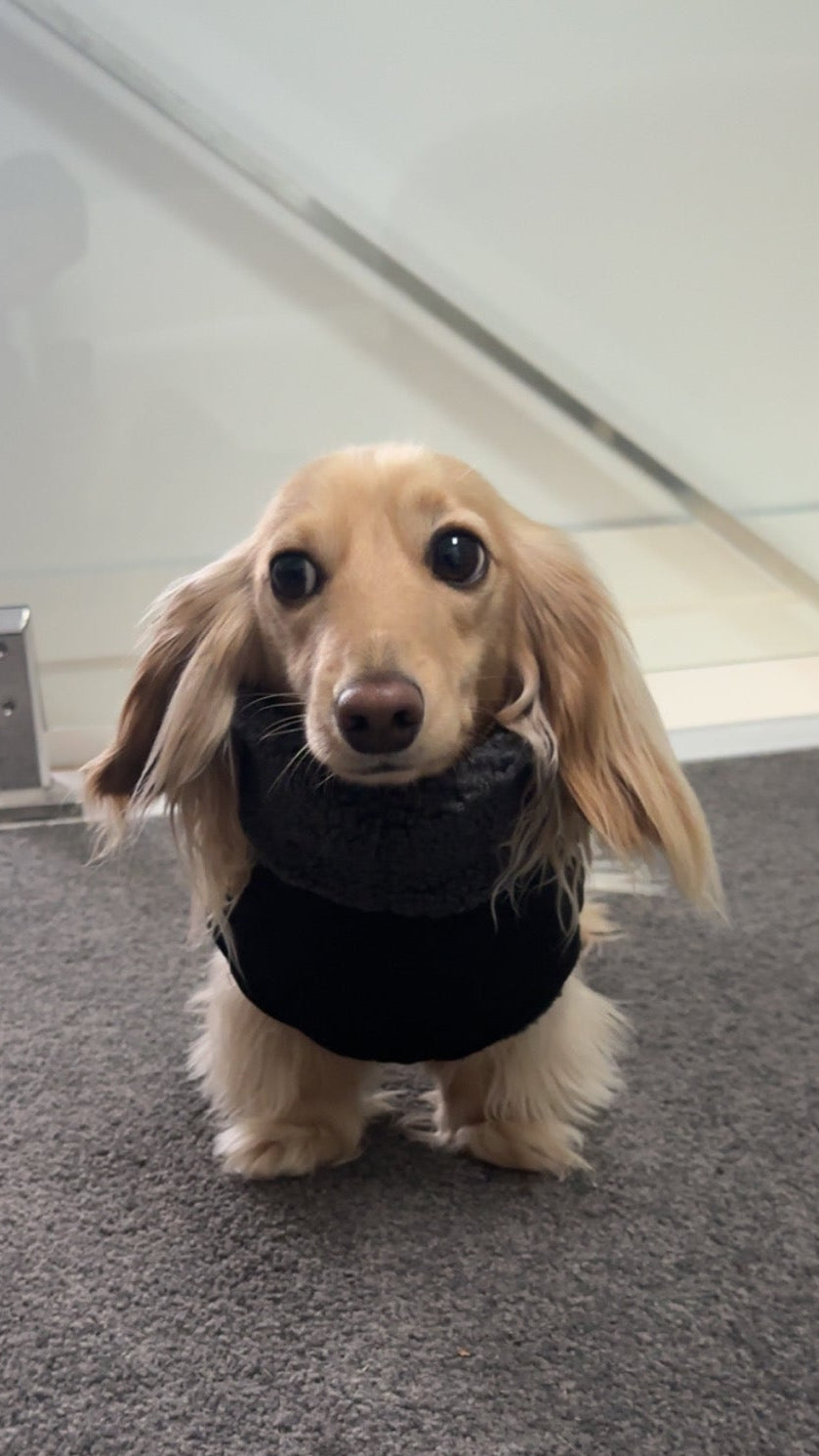 Buckle strap adapts to your doxie's barrel chest for a snug fit that won't slip during zoomies.