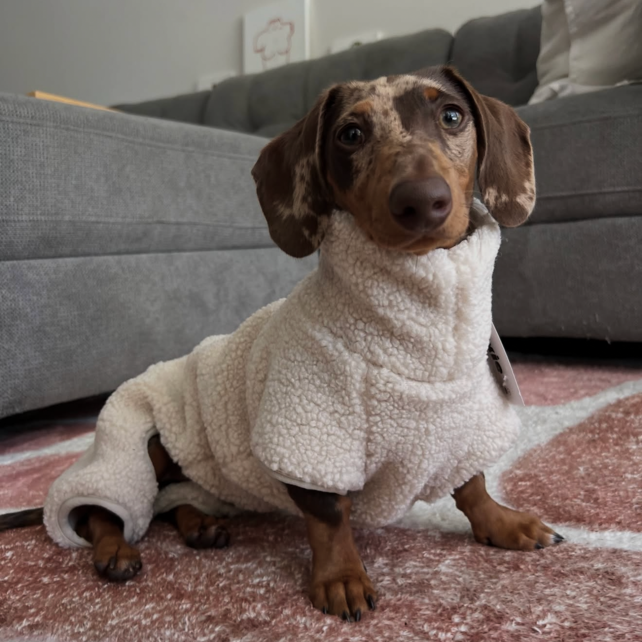 Extra cozy dual-layer sherpa keeps your pup warm, soft, and snug all season long.