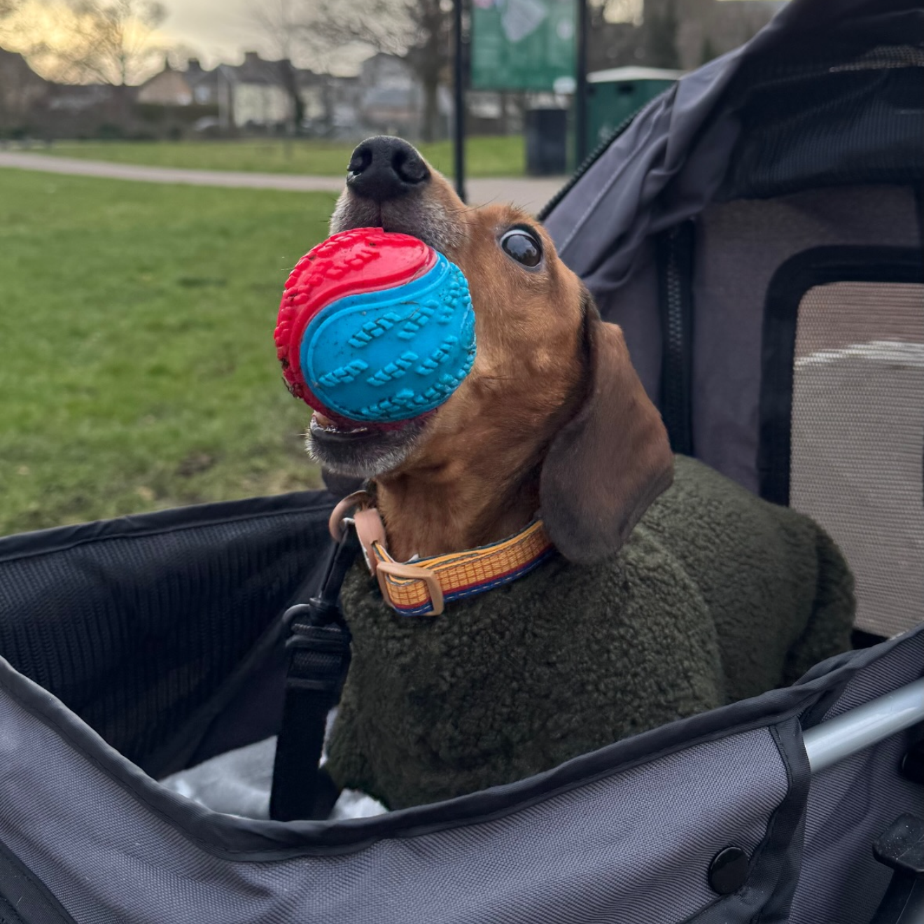 Stays put during play, sniffing marathons, and dramatic back rolls. Your pup won't wiggle out of this one.